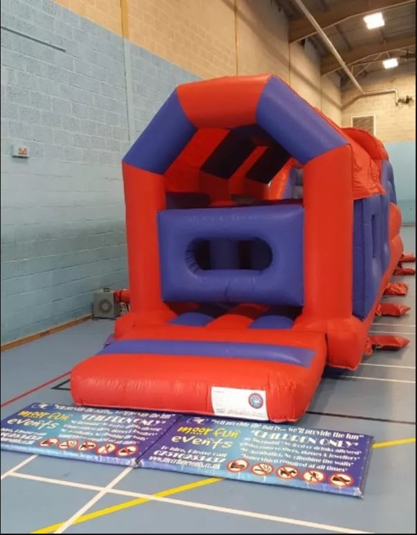 Unleash the fun and excitement with our Assault Course - a vibrant red and blue inflatable adventure perfect for children's parties! Measuring a grand 42ft x 11ft w x 12ft h, this incredible obstacle course is designed to captivate and engage children up to the age of 14. With room to accommodate approximately 8 kids at a time, it's sure to be a massive hit at any gathering! ๐