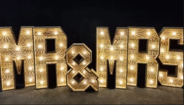 Illuminate Your Special Day with Mr and Mrs 4ft Rustic Light Up Letters