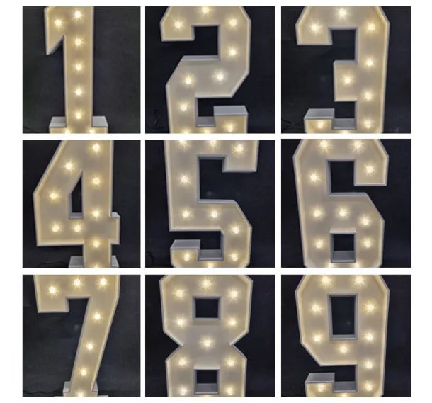 - Bright LED Illumination: Our number lights utilize bright, energy-efficient LED bulbs that ensure your display shines brightly throughout the event.